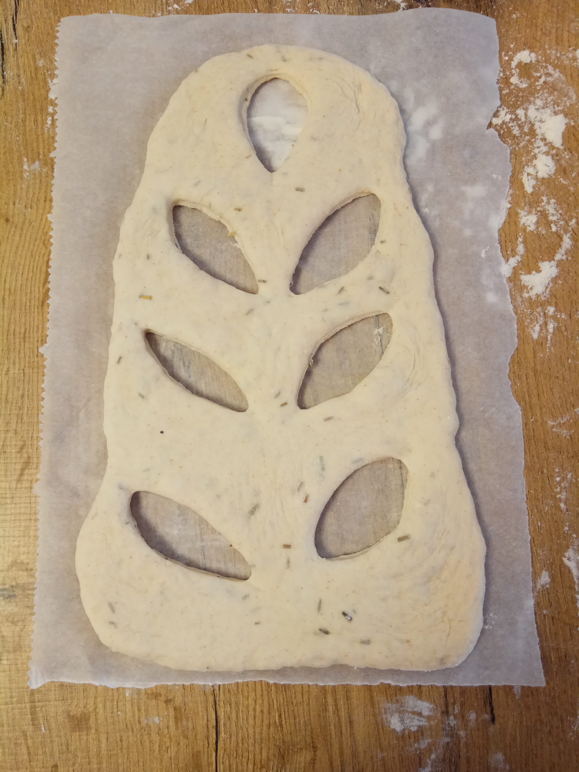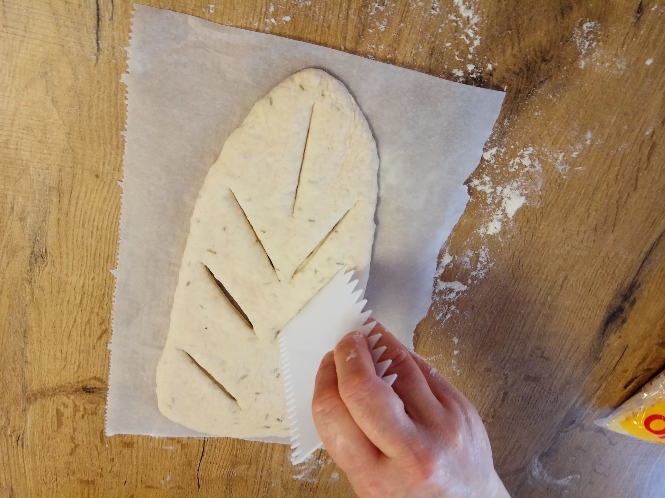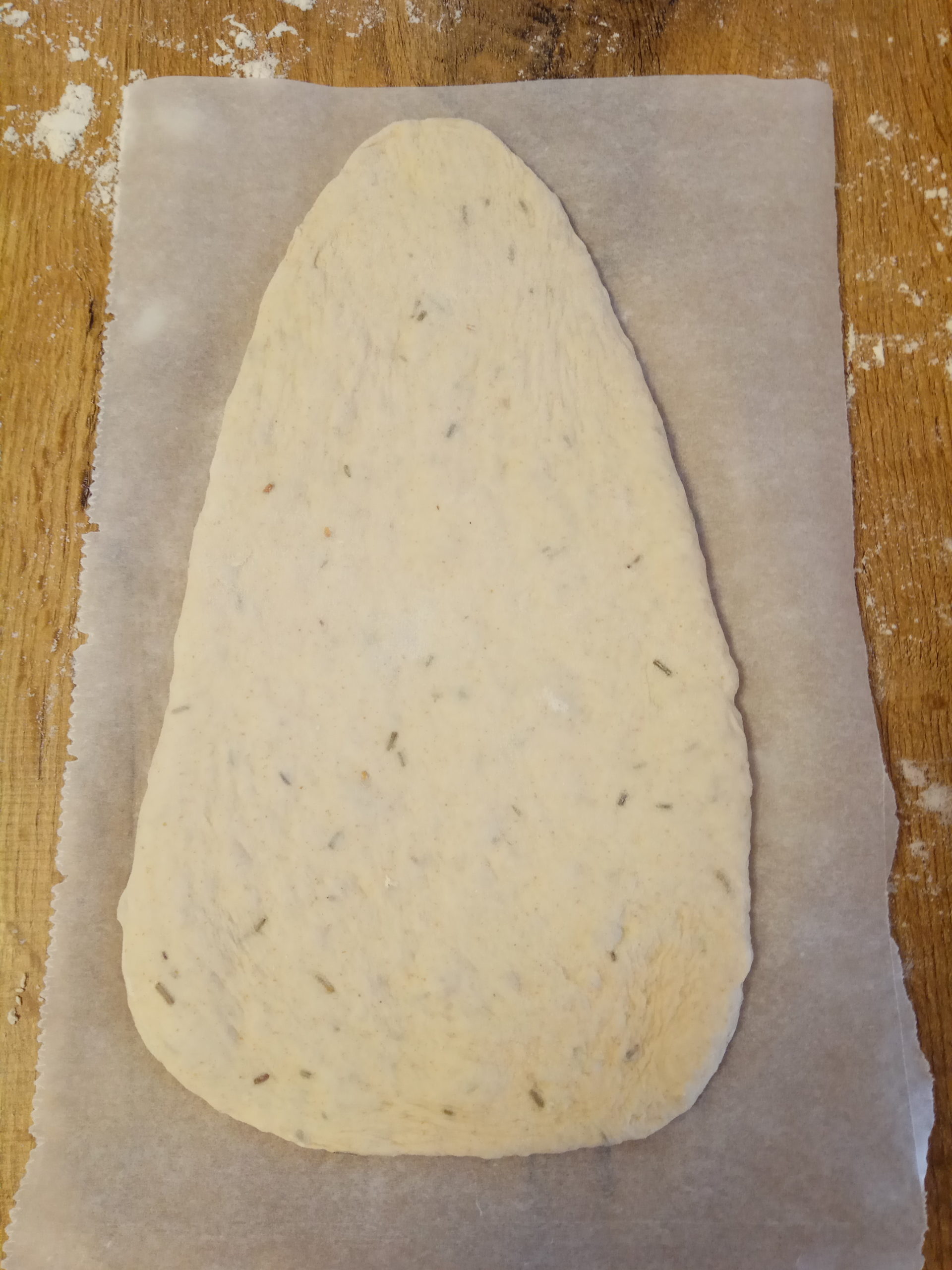 Pour aromatiser les fougasses vous pouvez incorporer vraiment tout ce que vous souhaitez. Pour cette recette j’ai rajouté à la pâte 1/2 cc de thym séché et 1 cc de romarin séché.
