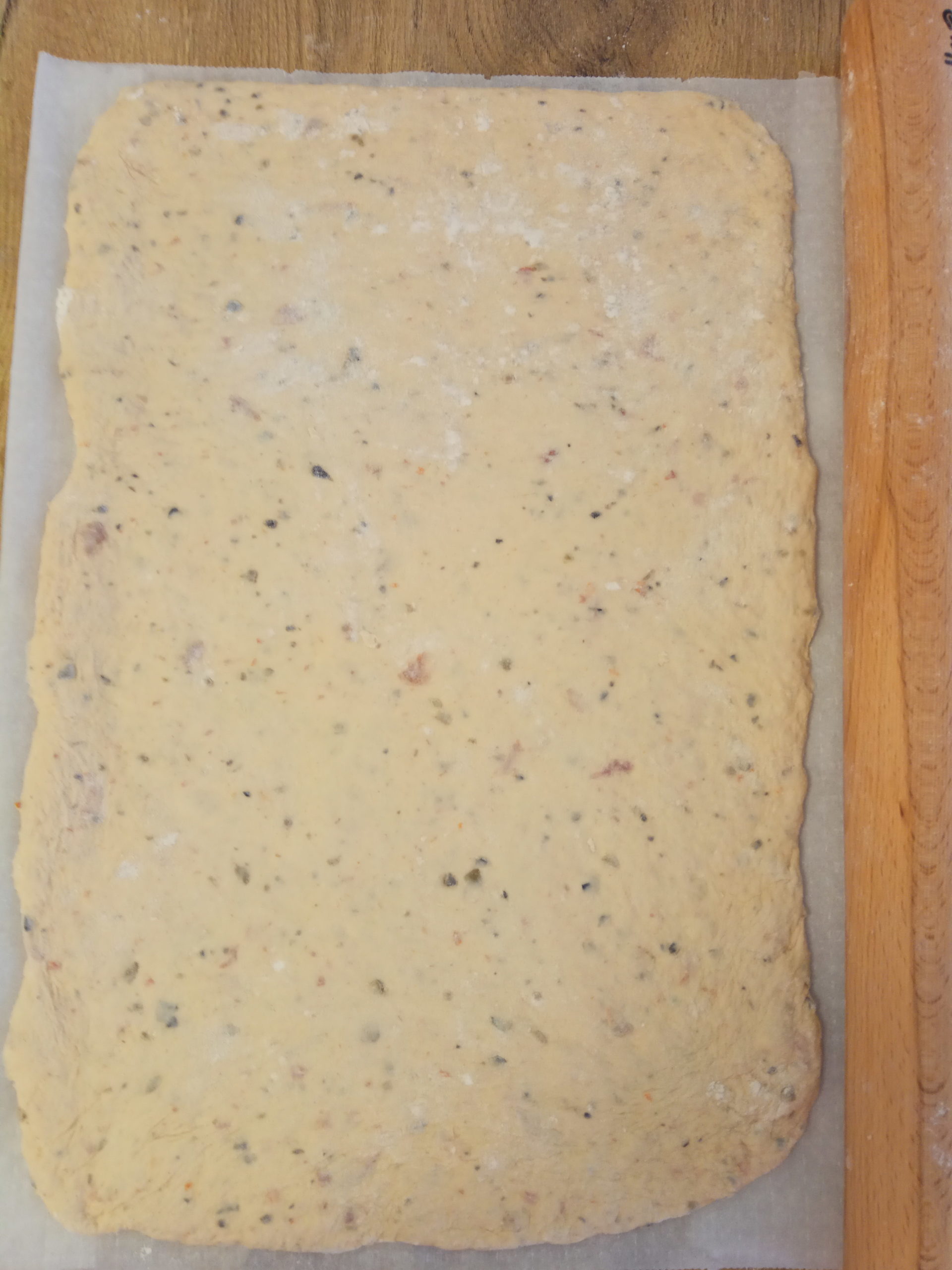 Vous pouvez aussi façonner des pâtons en rabattant chaque côté du rectangle avant de les rouler vous obtiendrez des cylindres qui vont donneront des fougasses rectangulaires lorsque vous les étalerez au rouleau