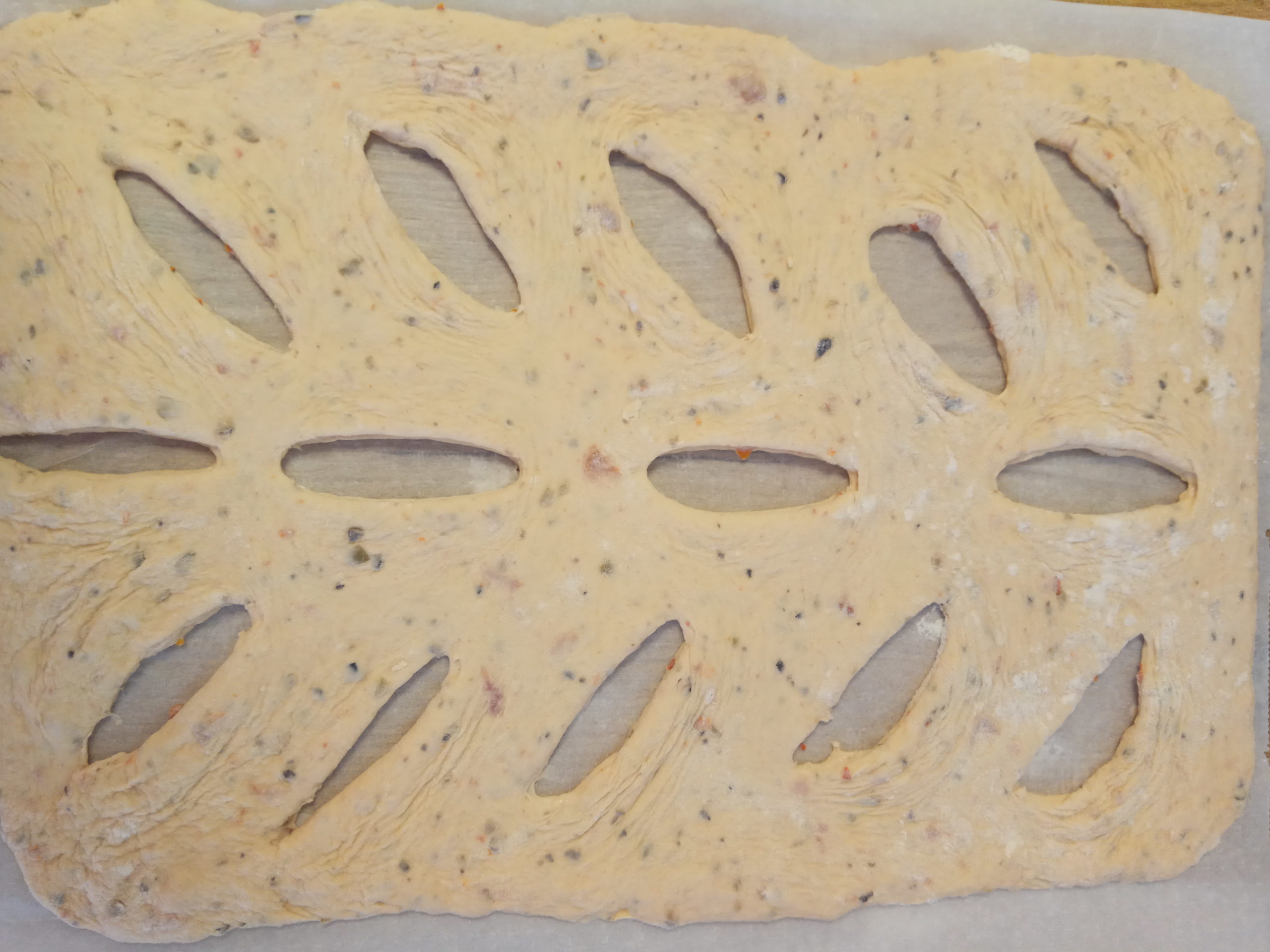 Dans une autre version j’ai rajouté 90g d’un mélange d’olives hachées et tomates séchées avec des mini cubes de mozzarella.
